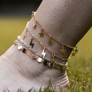 Anklet, Set de 4 Piezas, Color Oro y Color Plata.